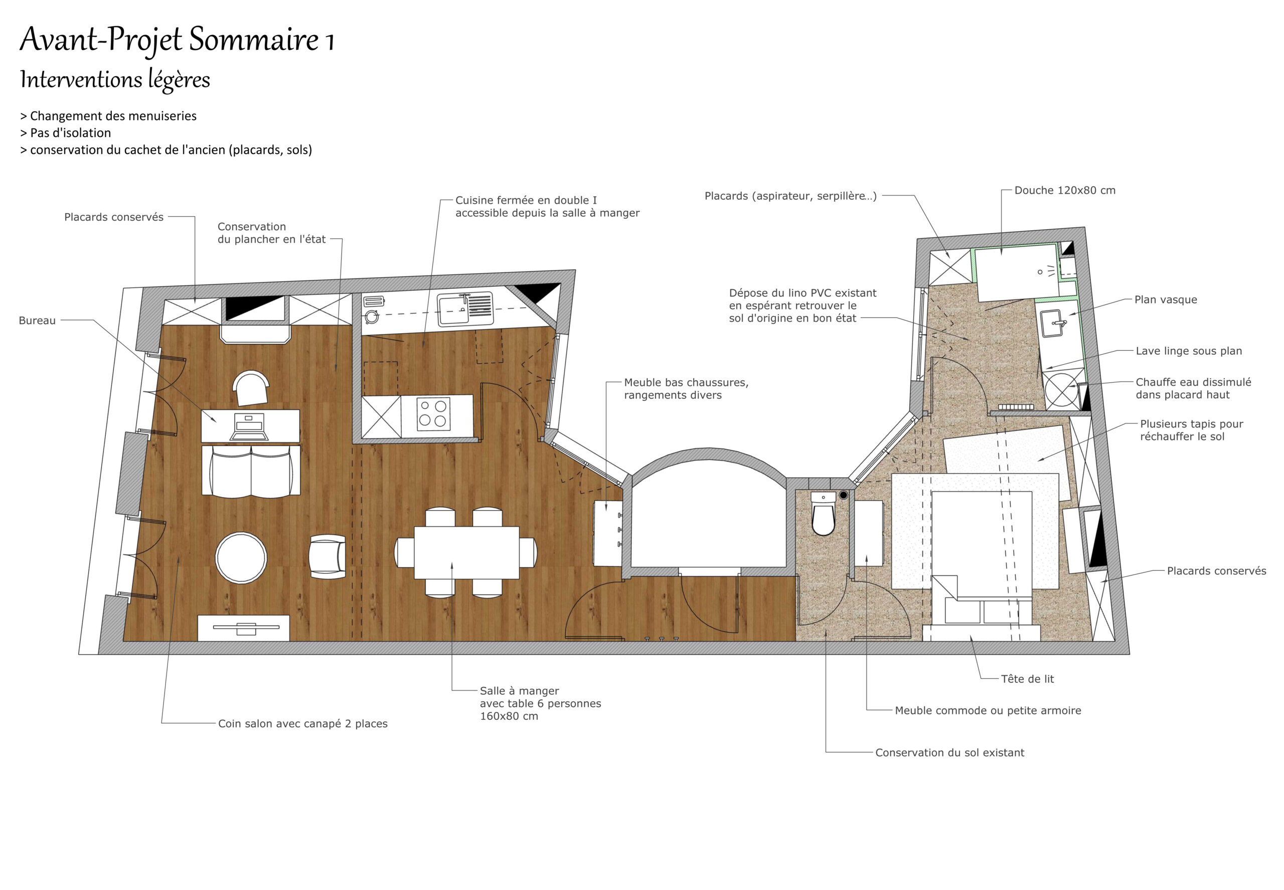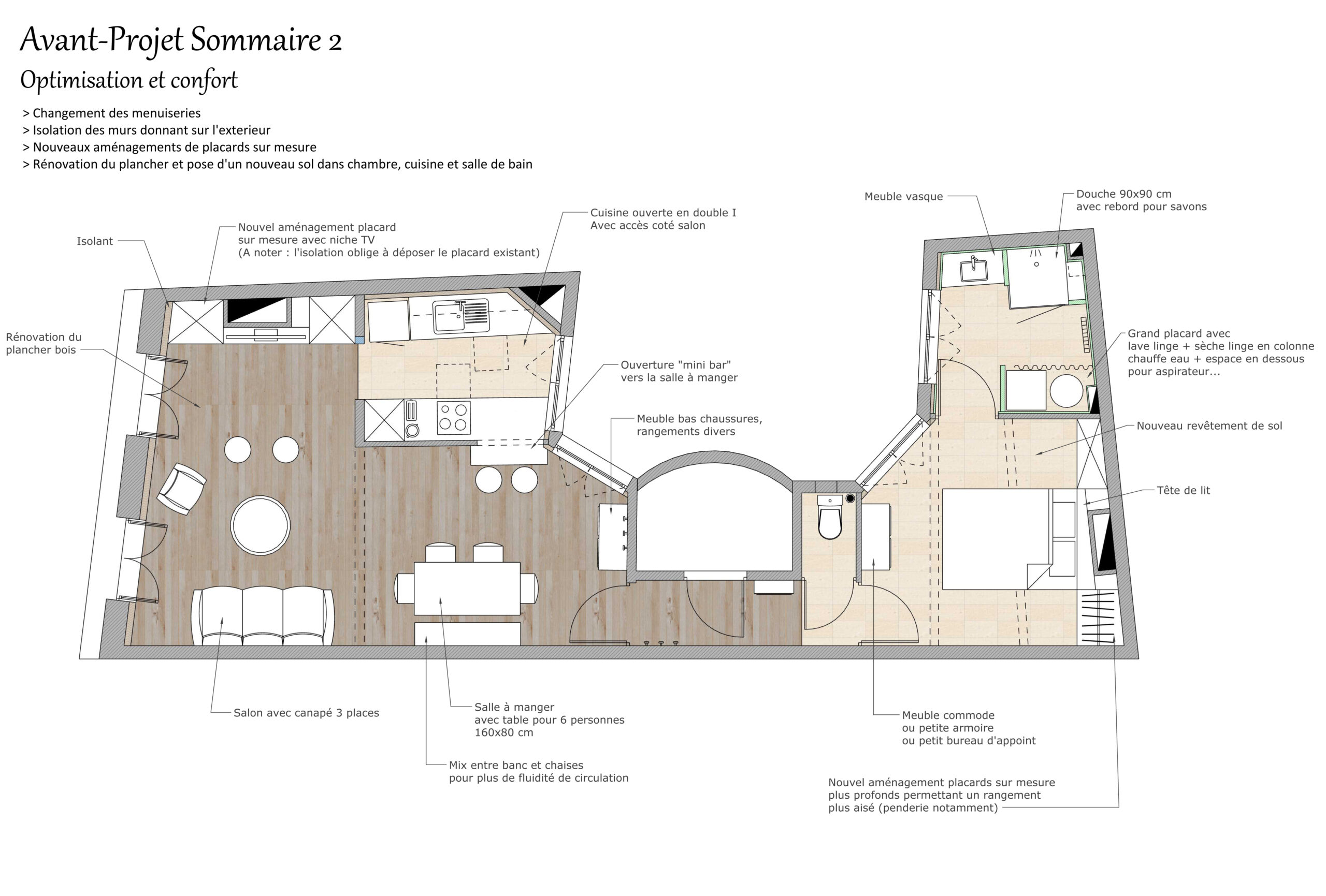 Plusieurs propositions d’aménagement différentes correspondant à vos besoins et vous permettant de mesurer tout le potentiel de votre bien afin de faire le(s) bon(s) choix : 2 ou 3 Avant-Projet Sommaire avec plans 2D commentés, croquis, planches d’inspirations …